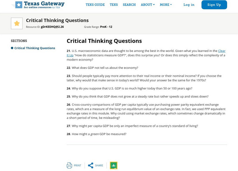 Texas Gateway: Chapter 5: Macroeconomic Perspective: Critical Thinking Questions