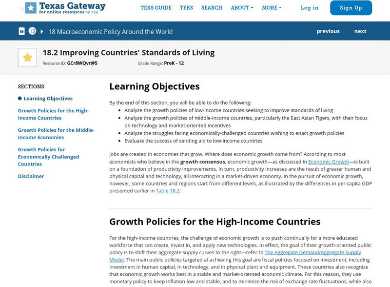 Texas Gateway: Ch. 18: Improving Countries' Standards of Living