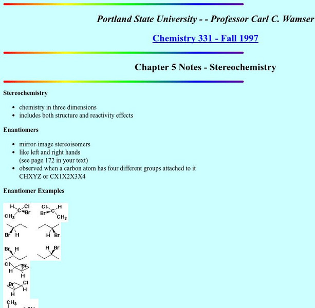 Portland State University: Chapter 5 Notes: Stereochemistry