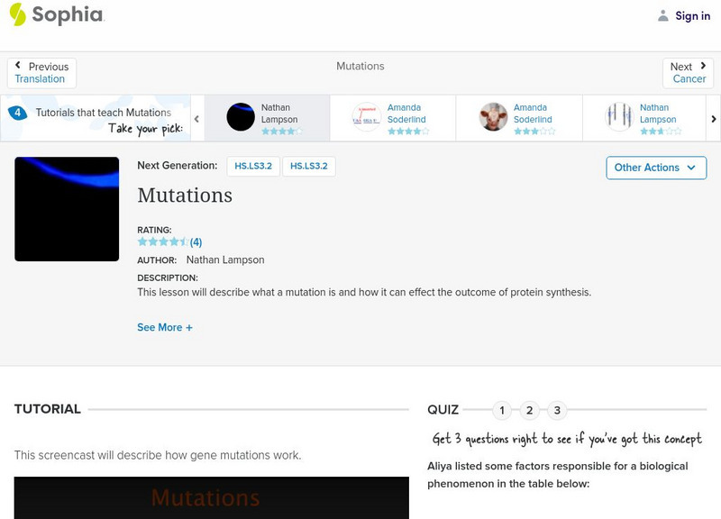 This lesson will describe what a mutation is and how it can effect the outcome of protein synthesis. It is 1 of 4 in the series titled "Mutations."
