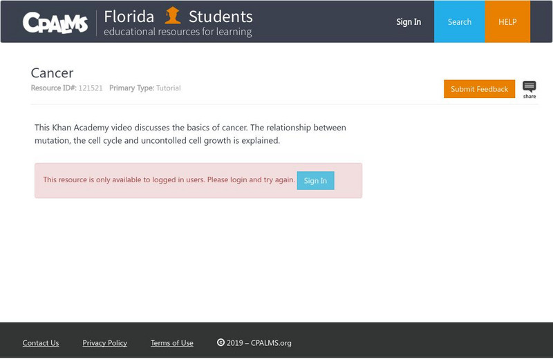 Florida State University Cpalms: Florida Students: Mutations, the Cell Cycle, and Cancer