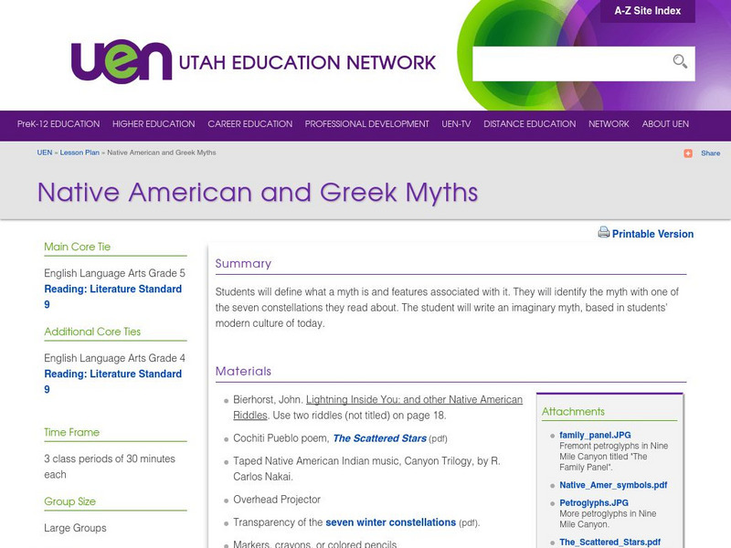 A learning module that begins with the Myth "The Star and the Lily" by Hamilton Wright Mabie, accompanied by guided reading questions, assessment questions, and discussion questions. The text can be printed as a PDF or assigned online...