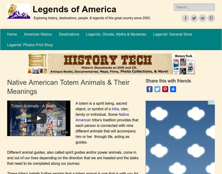 Information about Native American totem animals, how they are discovered, and what characteristics many animal totems represent.