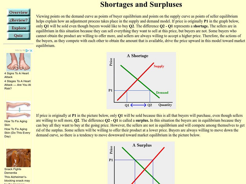 This site provides easy to understand examples of shortages and surpluses, and what each looks like on a supply and demand graph.