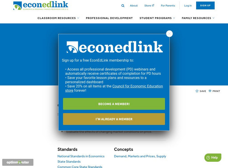 Through a series of resources, students use the concept of demand and supply to explain how free market prices and quantities are established, define equilibrium, and understand the idea of shortage and surplus.