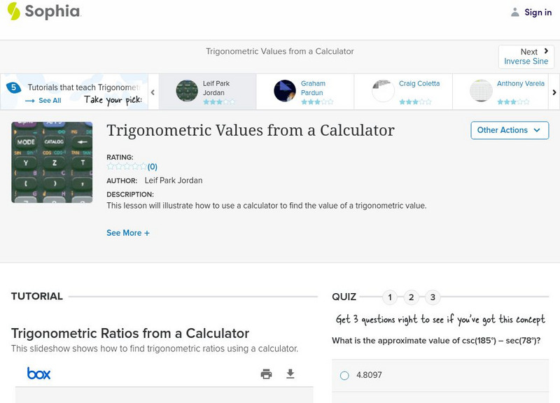 Sophia: Trigonometric Values From a Calculator: Lesson 2