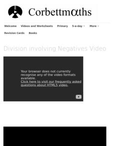 Once one masters integer multiplication, integer division is quite intuitive. Learners watch a short video to review how to divide integers. They see how the division rules are the same as multiplication and watch several example problems.