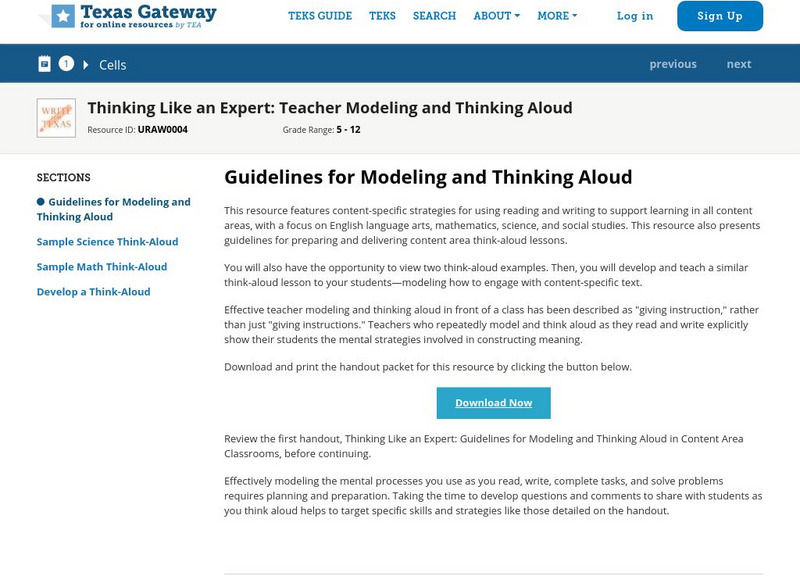 Texas Gateway: Thinking Like an Expert: Teacher Modeling and Thinking Aloud