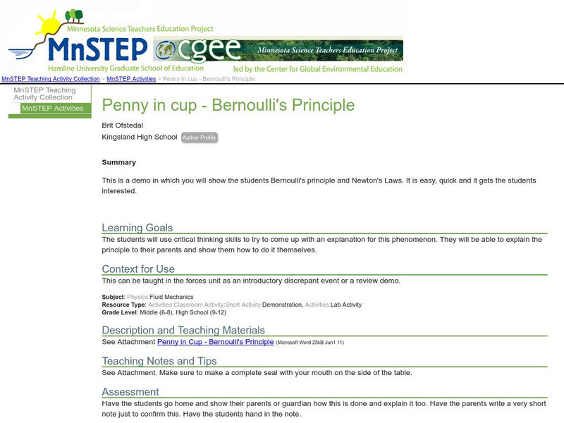 Serc: Penny in Cup: Bernoulli's Principle