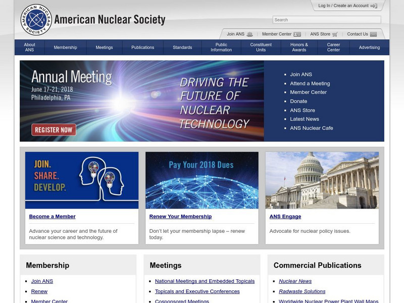 Resource provides information about nuclear energy. Read about current events, radiation doses, radiation emergency kits, and more. Also contains a helpful glossary of radiation and nuclear energy terms. Parts of the site are for members...