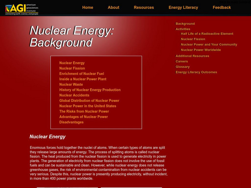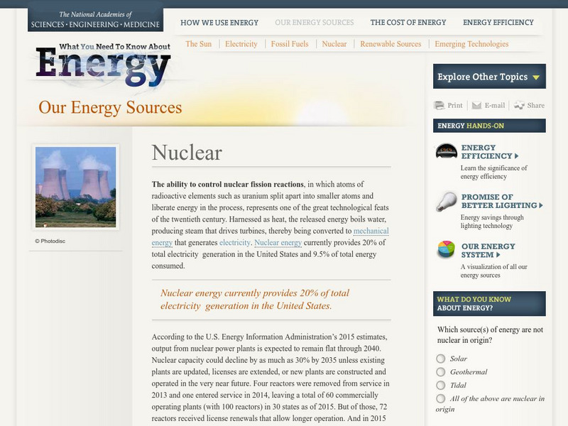 A resource page on nuclear energy. Learn what nuclear energy is, how it is produced, the history of the power, and advantages and disadvantages.
