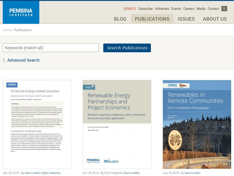 Pembina Institute, a well respected Canadian research organization, has posted a variety of reports on renewable energy and energy efficiency here. Many of them respond to or make recommendations on federal and provincial government...
