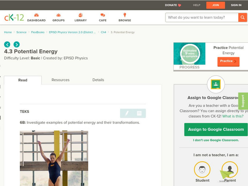 [Free Registration/Login may be required to access all resource tools.] In this online tutorial, students are invited to investigate examples of potential energy and their transformations.