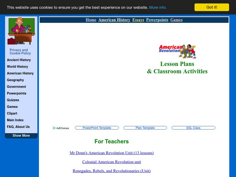 This site provides lesson plans and unit ideas for teaching about the American Revolution. Look for suggestions about specific people or the Revolutionary War in general.