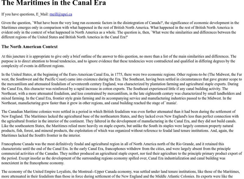 The Canal Era in Canada: The Maritimes in the Canal Era