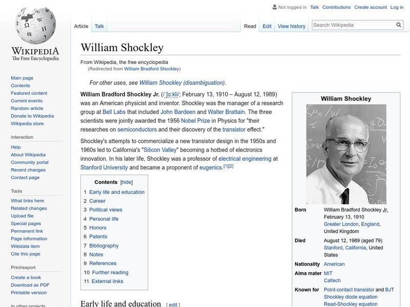 This site contains a Wikipedia description of Walter Houser Brattain.