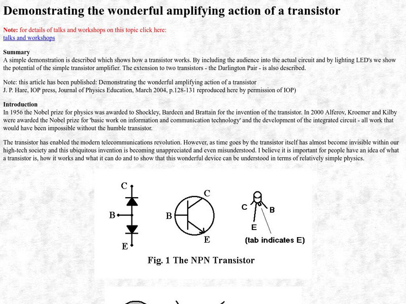 Creative Science Centre: Demonstrating the Amplifying Action of a Transistor