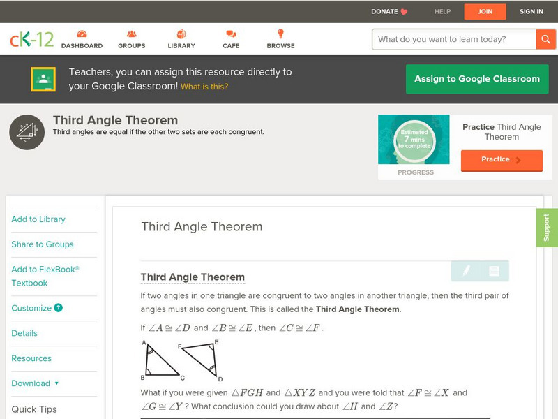 Ck 12: Geometry: Third Angle Theorem Grades 8 10