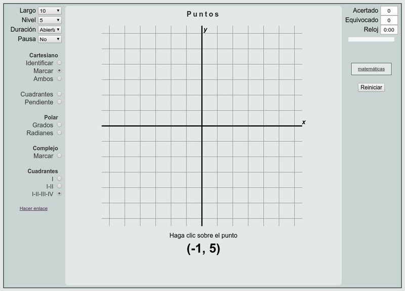 This is an interactive practice test to review graphing points on the Cartesian, Polar and Complex plane. Test are timed and keep track of right and wrong answers.