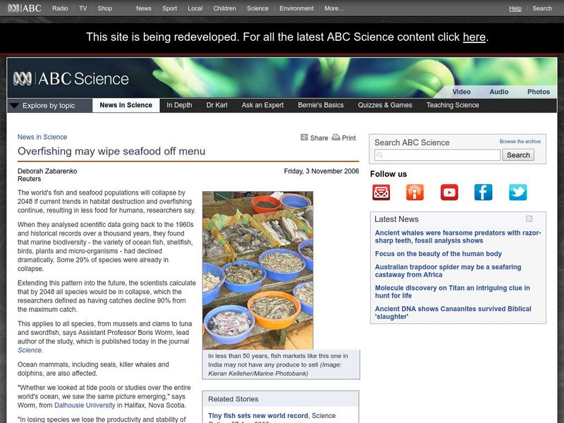 Australian Broadcasting Corporation: News in Science: Overfishing May Wipe Seafood Off Menu