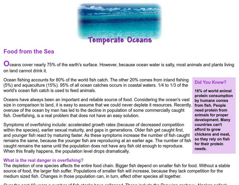 Did you know that 80% of the fish we eat comes from the ocean? Since oceans cover so much of the earth you would think that we would never be in danger of running out of its resources. Learn how overfishing is causing many problems with...