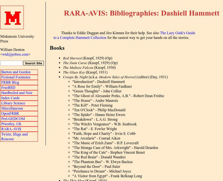 A complete listing of Hammett's works can be found at this site, including novels, stories and film scripts.