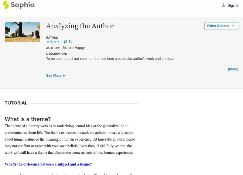 A slideshow with ten slides that discusses the difference between a subject and a theme and gives several examples of each found within a variety of popular classical and modern texts.