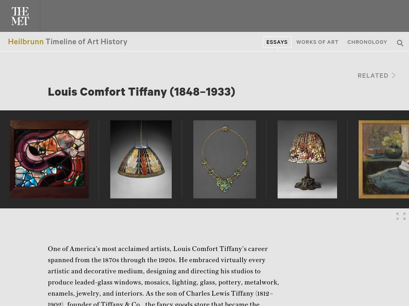 Louis C. Tiffany created fabulous mosaics, stained-glass windows, Favrile glass, lamps, enamels, ceramics, jewelry, metalwork, drawings and paintings. This site provides details on his life and work with wonderful images to explore.