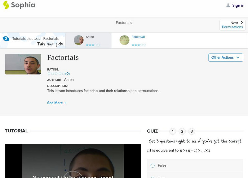 This lesson introduces factorials and their relationship to permutations. It is 3 of 5 in the series titled "Factorials."