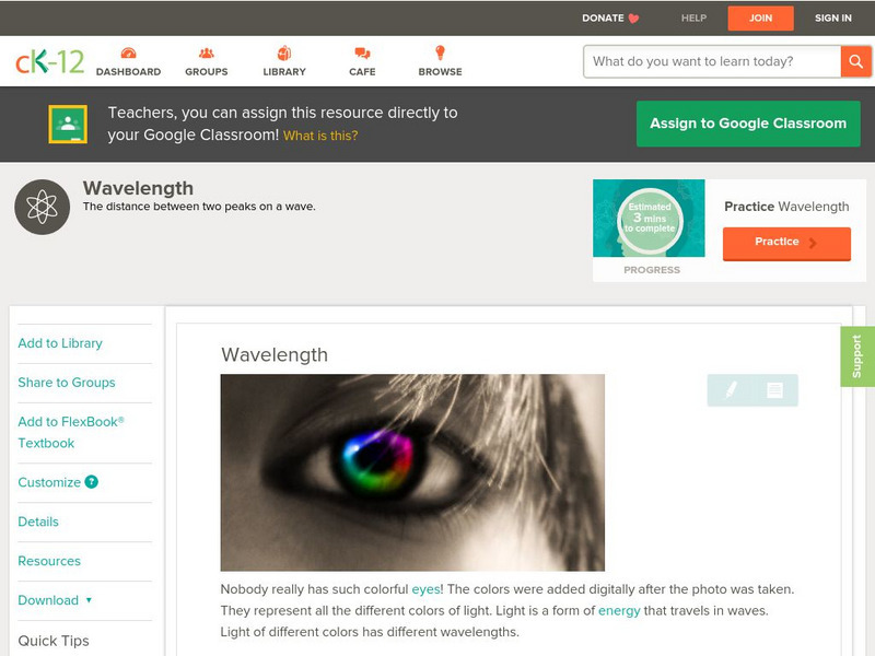 [Free Registration/Login may be required to access all resource tools.] What wavelength is and how it relates to the energy of a wave.