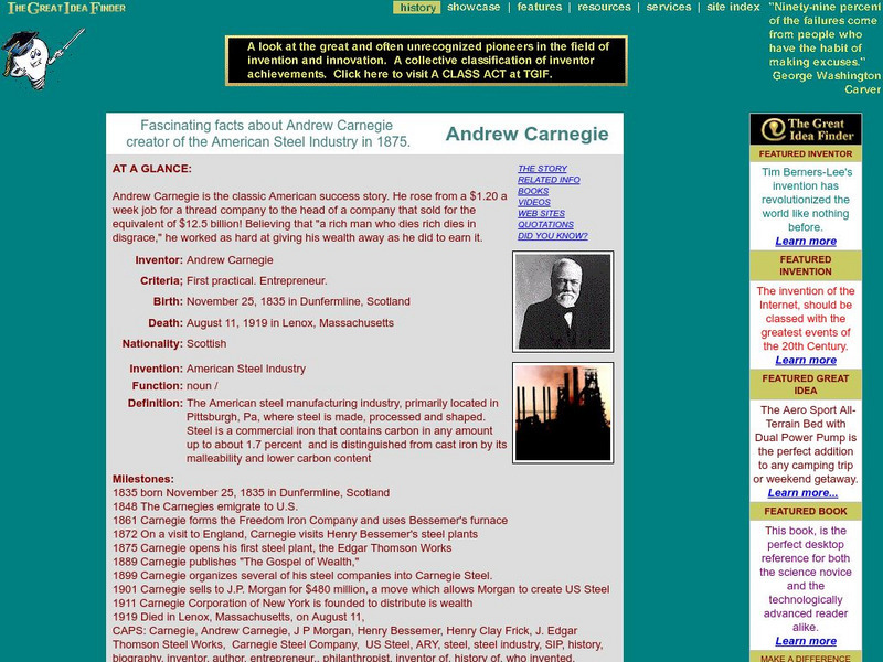 PBS provides this five-part, thorough biography of one of the richest men in America, Andrew Carnegie.