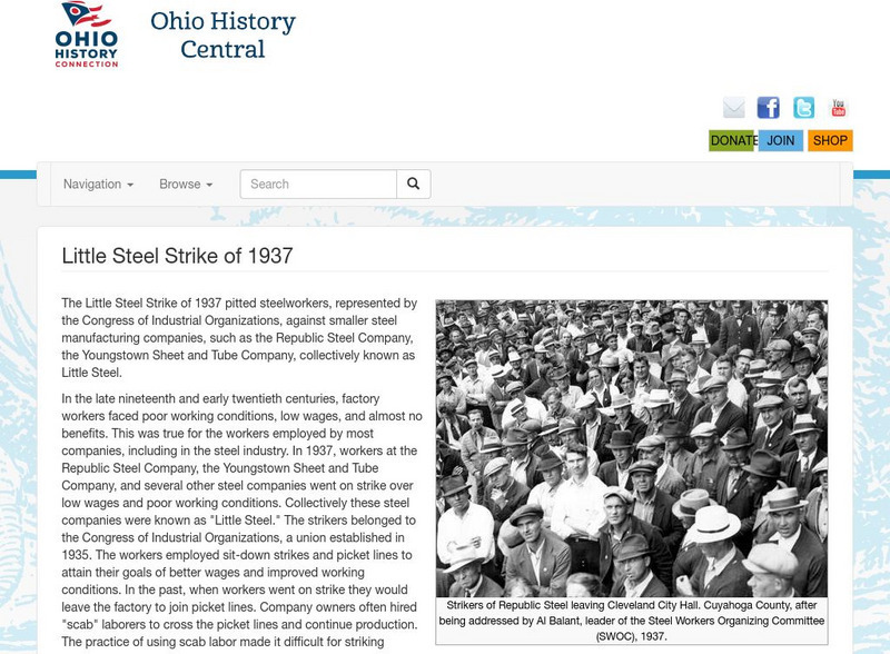 An interesting article about the strike against the Little Steel companies in Ohio in 1937. It describes the use of the sit-down strike by the unionized steel workers.