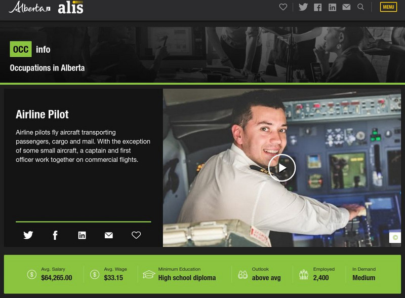 Alberta Human Resources and Employment: Oc Cinfo: Airline Pilot