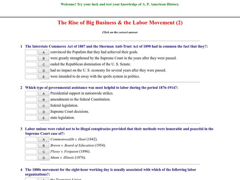 Historyteacher.net: The Rise of Big Business & the Labor Movement: Quiz (2)