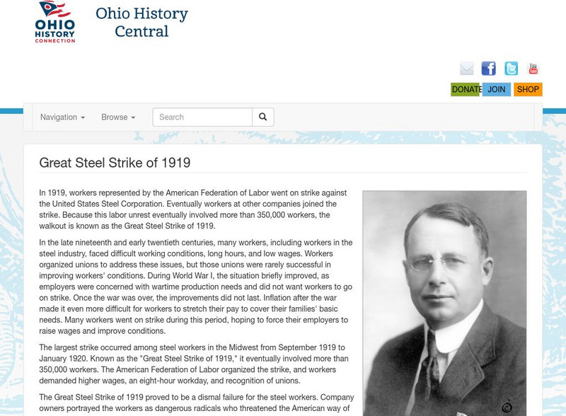 Ohio History Central gives a brief summary of the Great Steel Strike of 1919, an attempt by steel workers to get higher pay and a shorter work day. Find out the results of the strike.