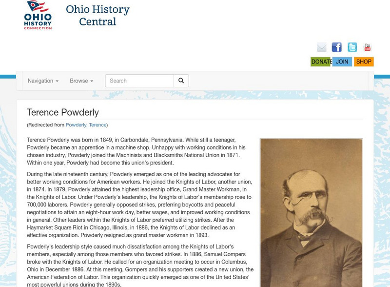 A brief biography of Terence Powderly, formative leader of the Knights of Labor, as well as an official in the Bureau of Immigration.