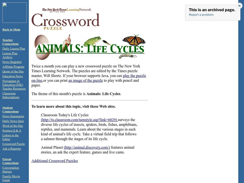 New York Times: Crossword Puzzle: Animals Life Cycle
