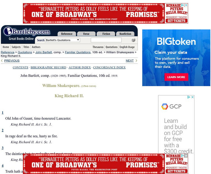 Full text and free online versions of plays, essays, fiction, nonfiction, poetry and short stories. Search by favorite author or title and immediately find your text of choice.