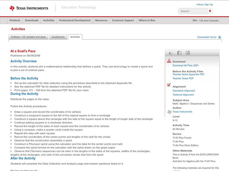 In this activity, students plot a mathematical relationship that defines a spiral. They use technology to create a spiral and to plot a set of ordered pairs.