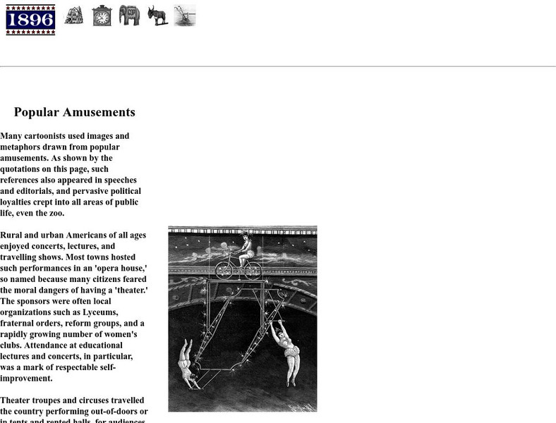 This 1896, A Website of Political Cartoons site lists concerts, lectures, travelling shows, opera houses, circuses, and more as popular amusements during the Gilded Age