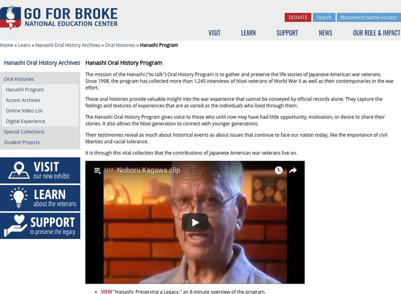 The stories of Japanese-American soldiers' experiences up to and during World War II and on to today are chronicled on this site.