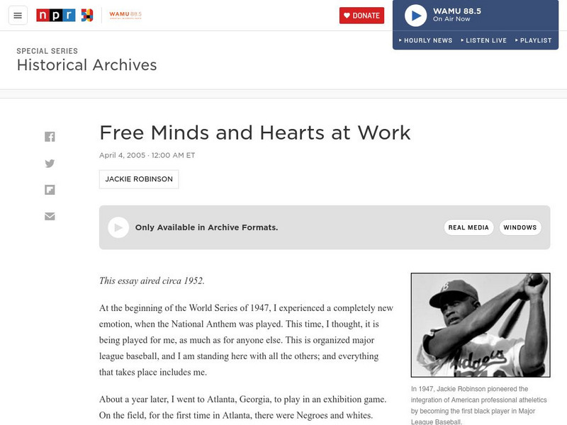 Listen to Jackie Robinson in his own words discuss his fight against prejudice in Major League Baseball. In 1947, he became the first professional black baseball player in history. This audio presentation presents his views on...
