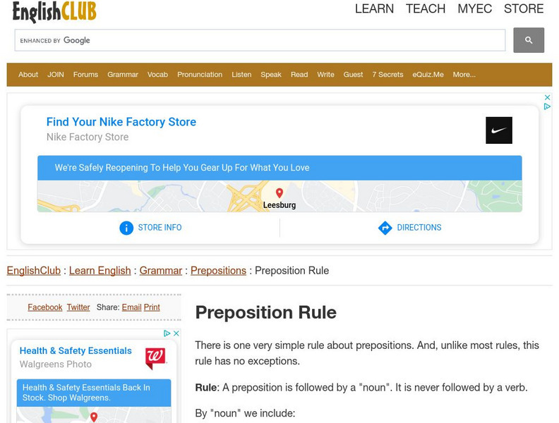 A rule about prepositions and prepositional phrases. Examples are provided.