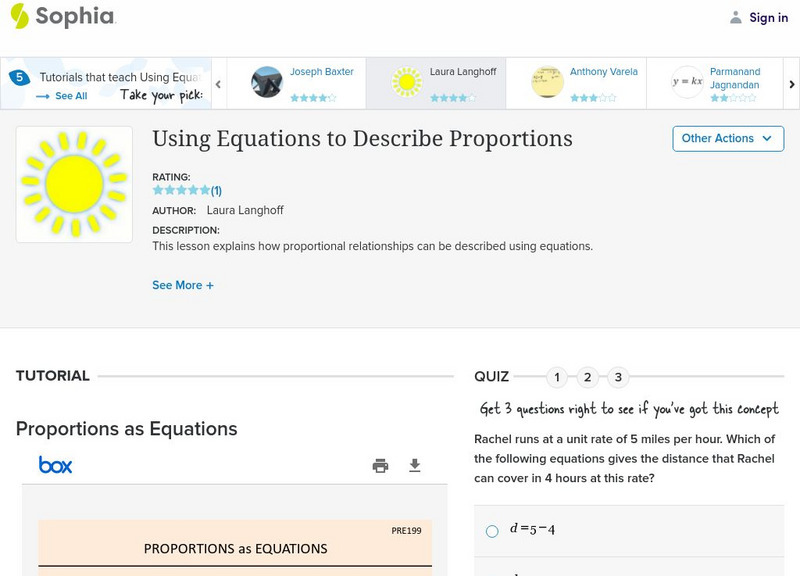 Sophia: Using Equations to Describe Proportions: Lesson 3