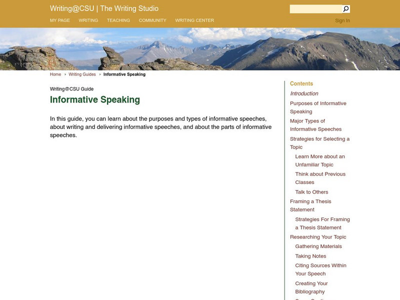 Introduction to basic concepts necessary for delivering an informative speech. Eight different areas are developed from purpose to speech delivery. Look on the right side and select the specific topic you are looking for. SL.9-10.4...