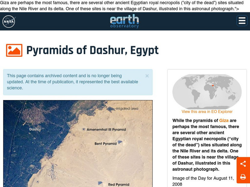 An astronaut's view of the pyramids in Dashur, Egypt, accompanied by explanatory text.