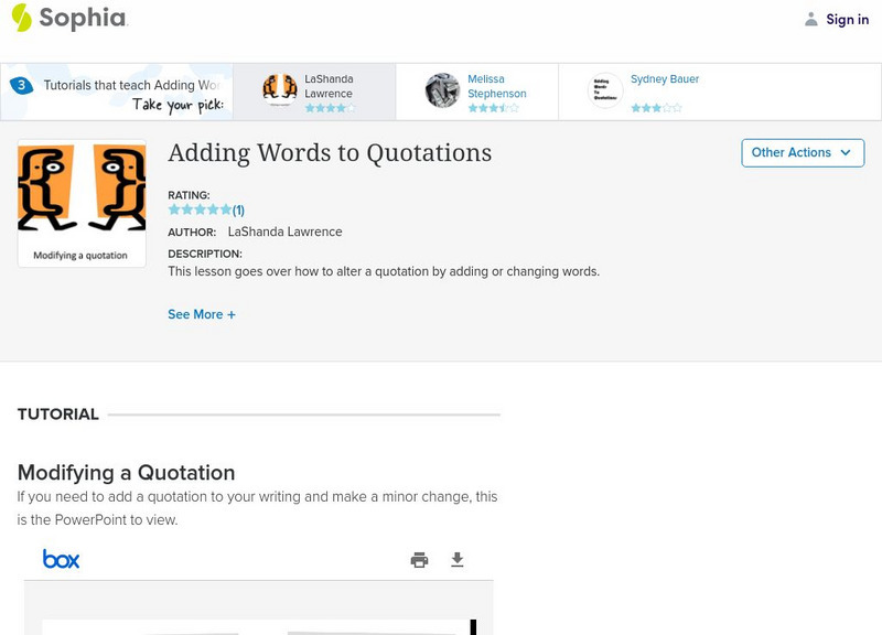 This slideshow lesson explainsr how to alter a quotation by adding or changing words. Numerous examples are provided.