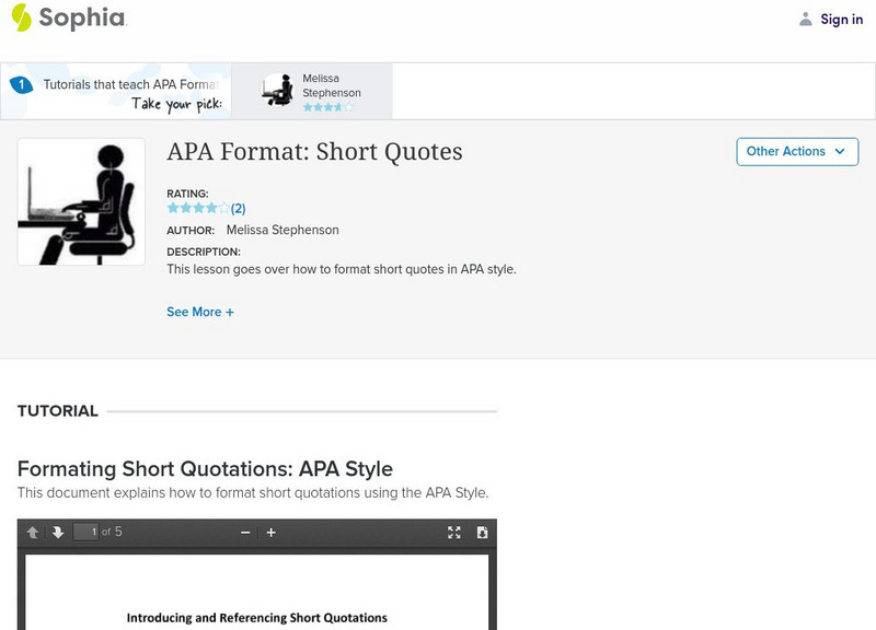 A five-page printable document followed by a screencast lesson [6 mins, 31 secs] explaining how to format short quotations using APA formatting.