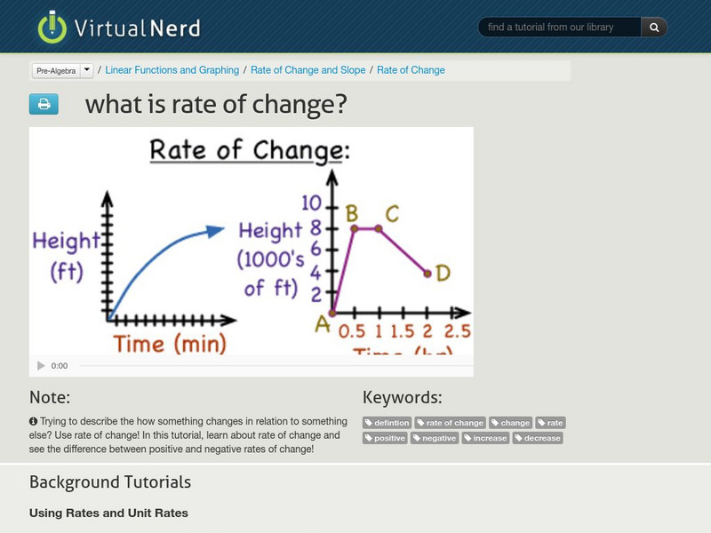 Watch this tutorial to learn about rate of change and see the difference between positive and negative rates of change. [6:21]