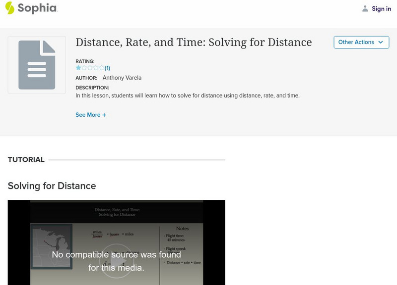 Sophia: Distance, Rate, and Time: Solving for Distance